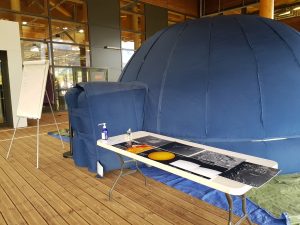 Le dôme gonflable d’environ 6m au sol pour 3m de haut permet l’accueil de 30 à 40 personnes.